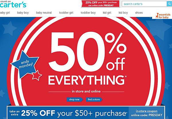 Carter's 童裝下5折 + 額外75折!